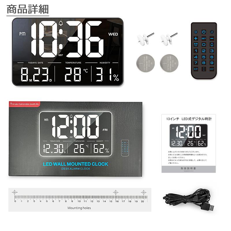 デジタル時計 時計 壁掛け デジタル ブラック ホワイト