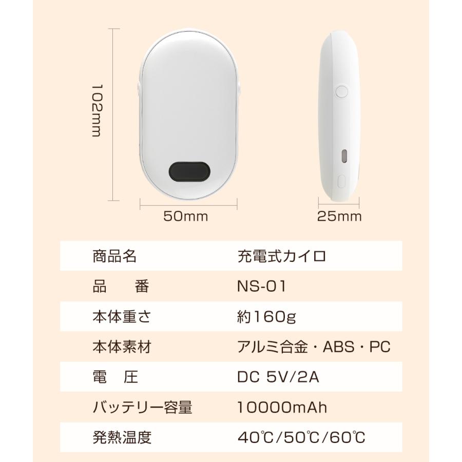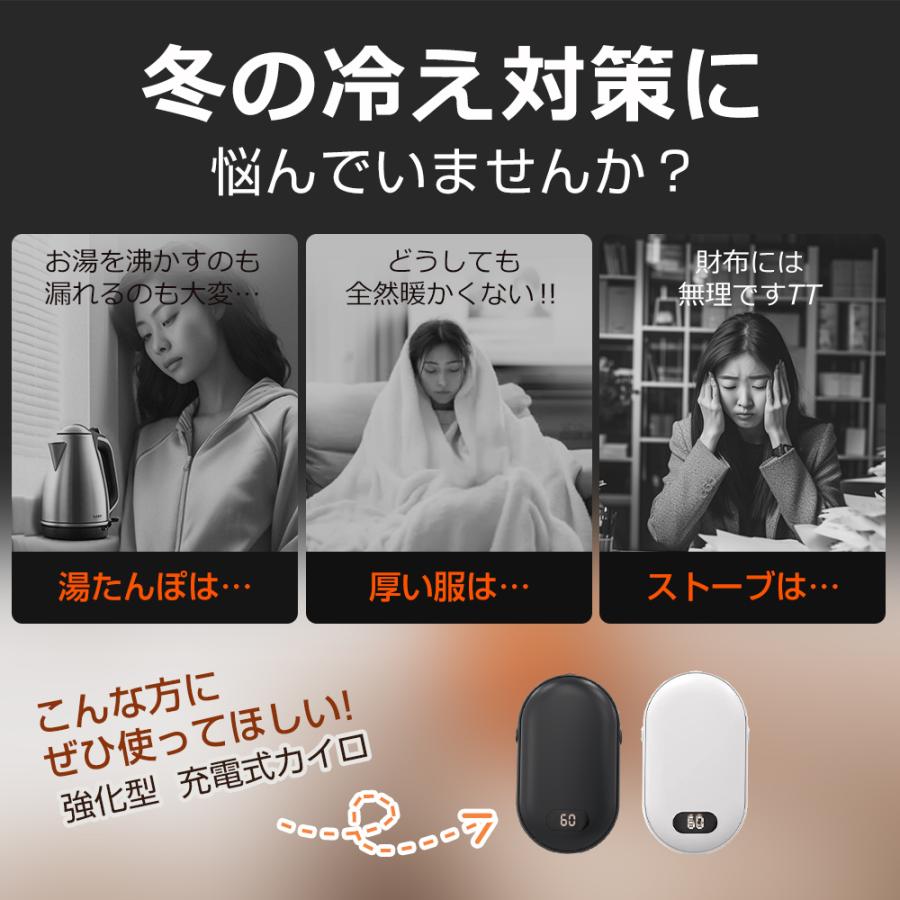 充電式カイロ 防寒グッズ カイロ モバ ホワイト ブラック