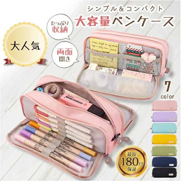 ペンケース 筆箱 大容量 収納 おしゃ 日用品雑貨 文房具 手芸 特集 ブルー ピンク パープル グリーン イエロー ネイビー ブラック