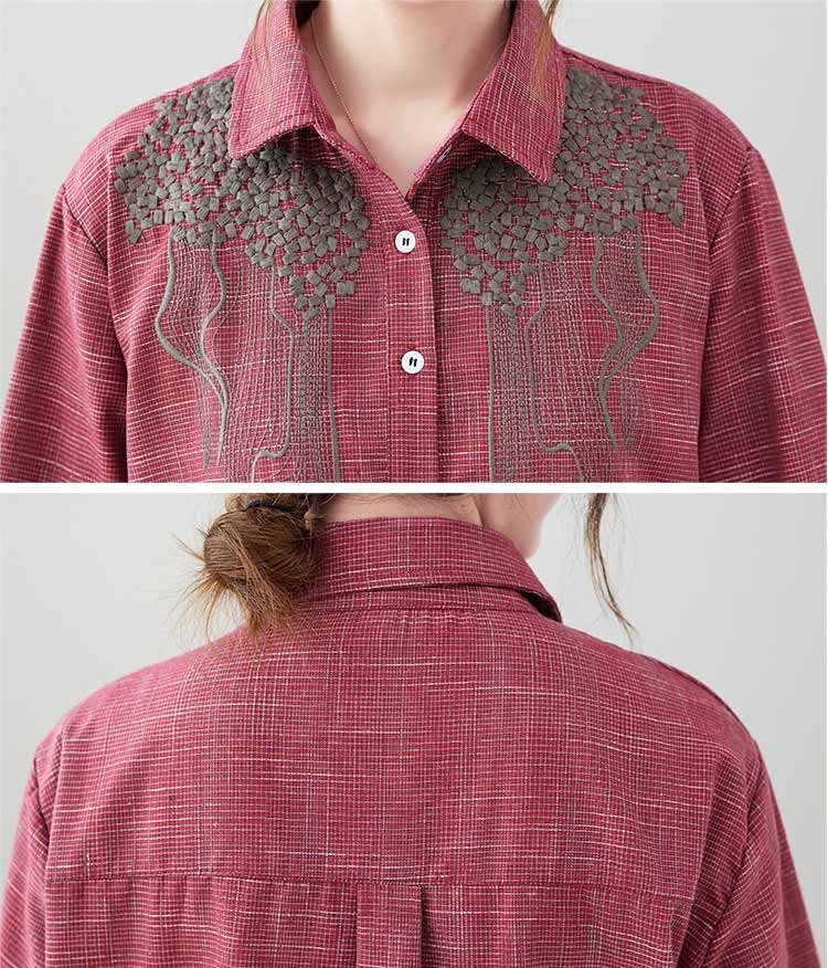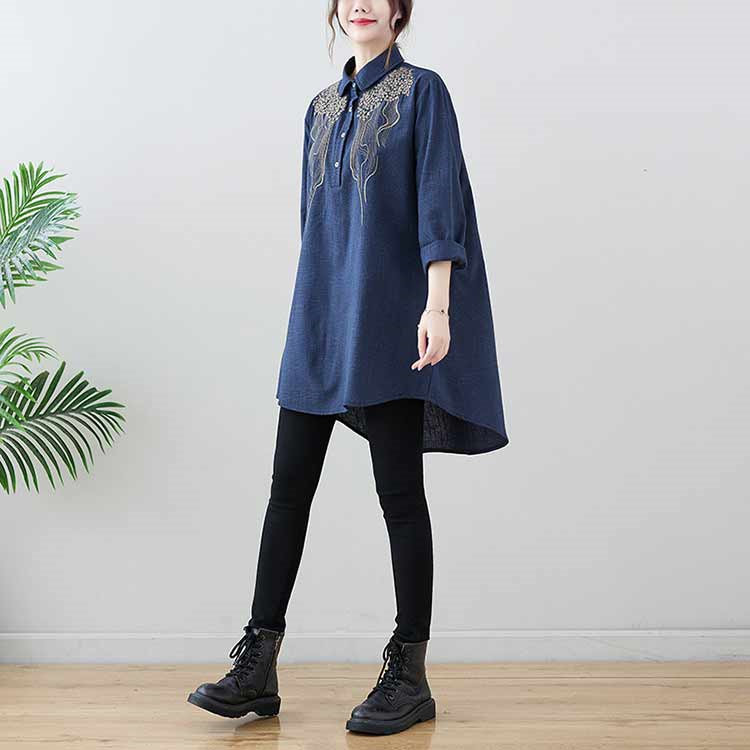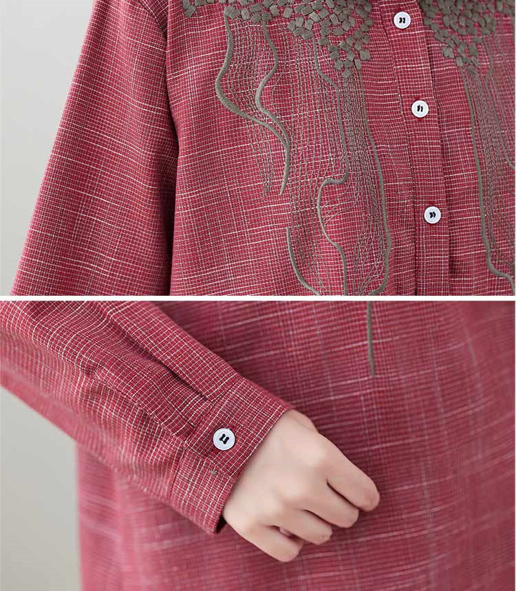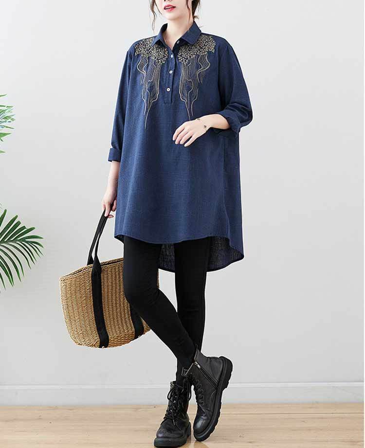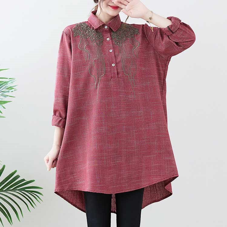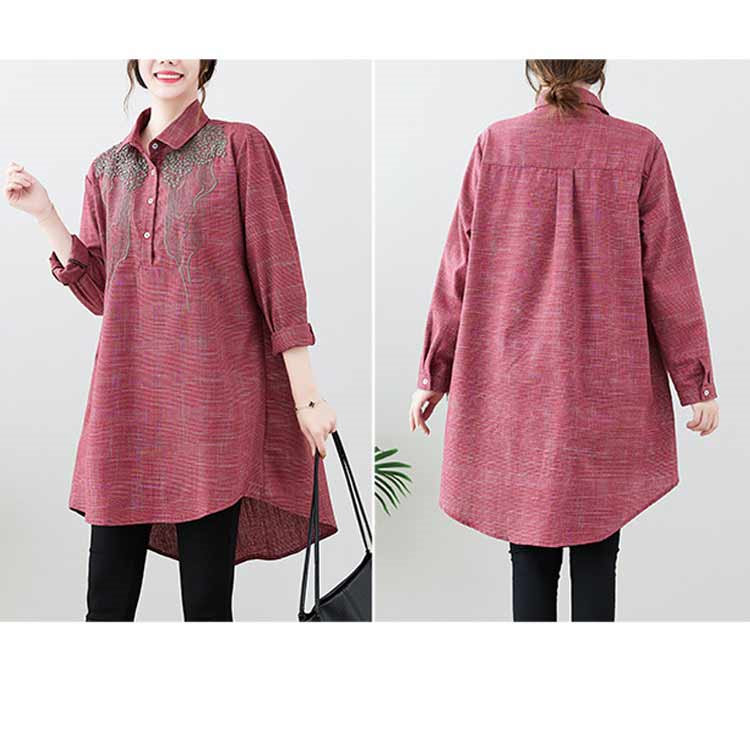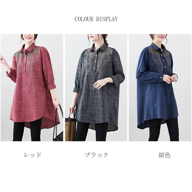 チュニック 長袖 春秋 ブラウス 刺繍 レディースファッション 早い者勝ち レッド ブラック 紺色 M L XL 2XL