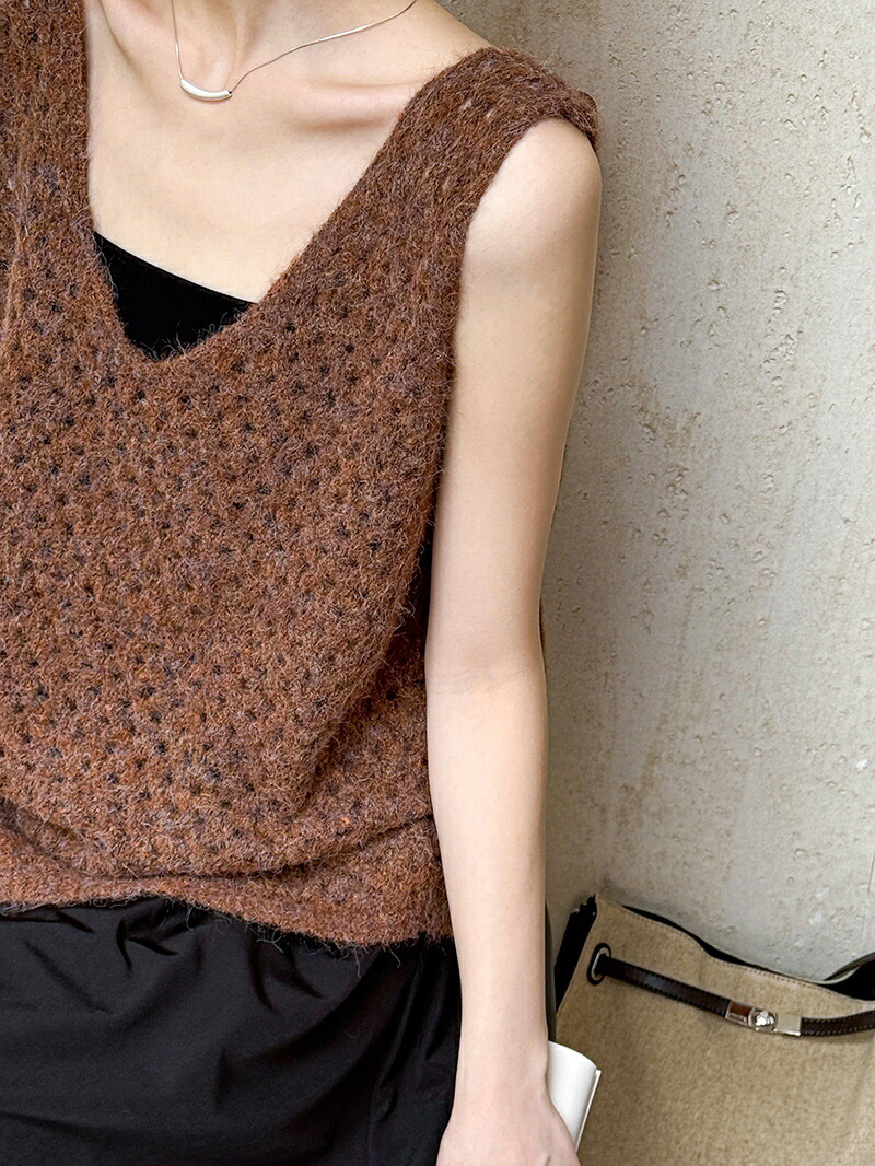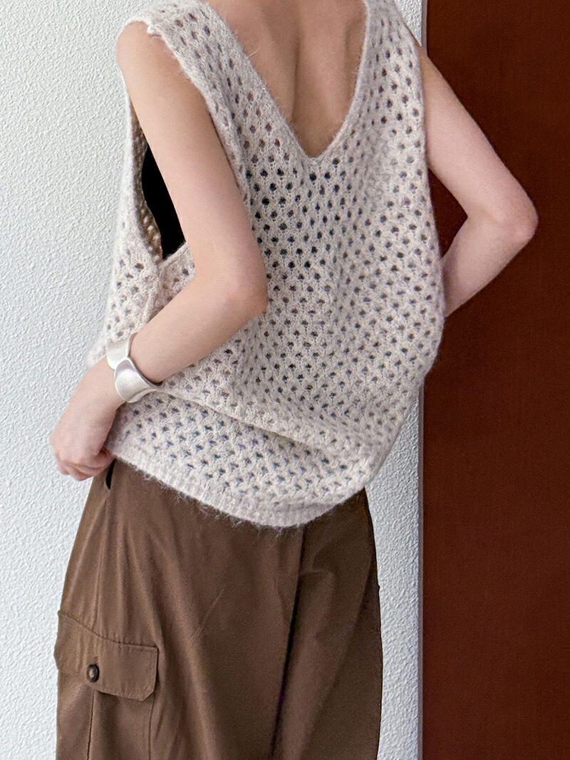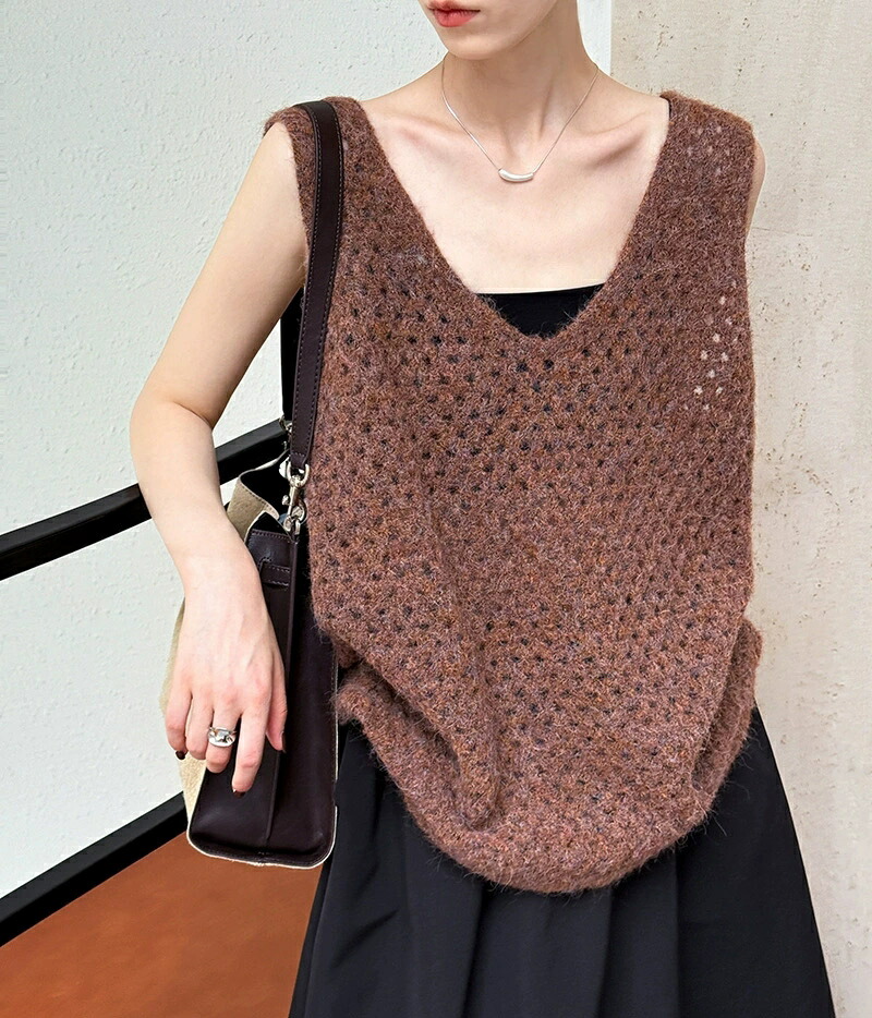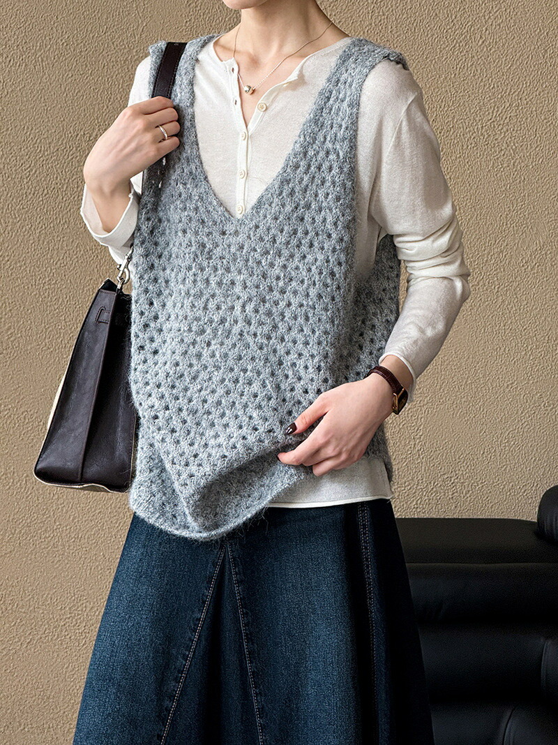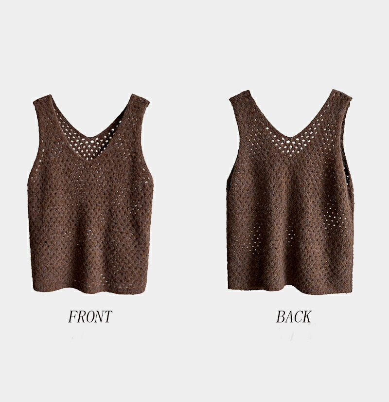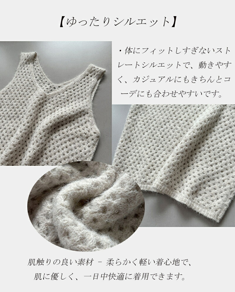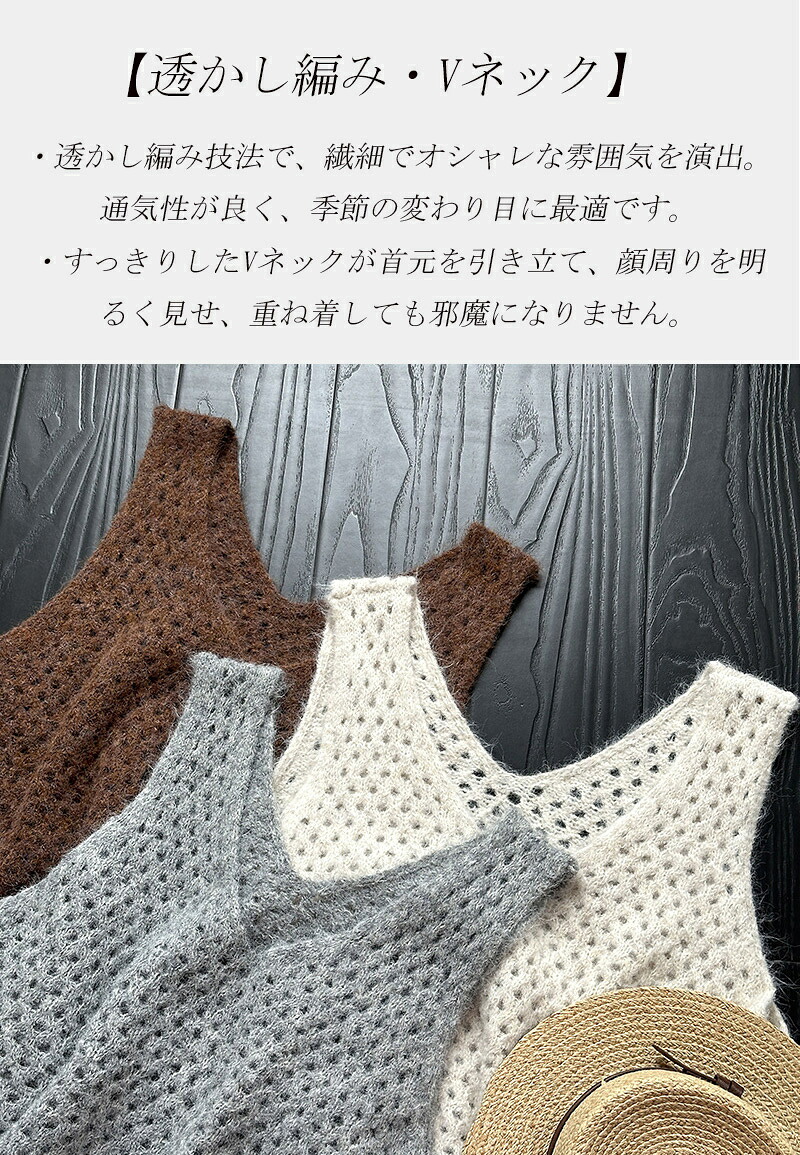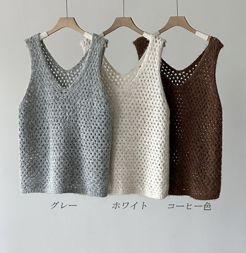 透かし編み ニットベスト Vネック レ レディースファッション 豊富な品揃え グレー ホワイト コーヒー色