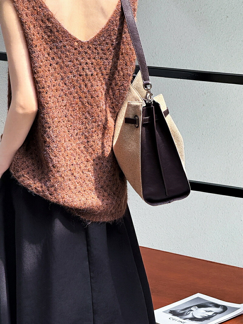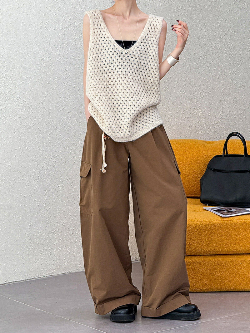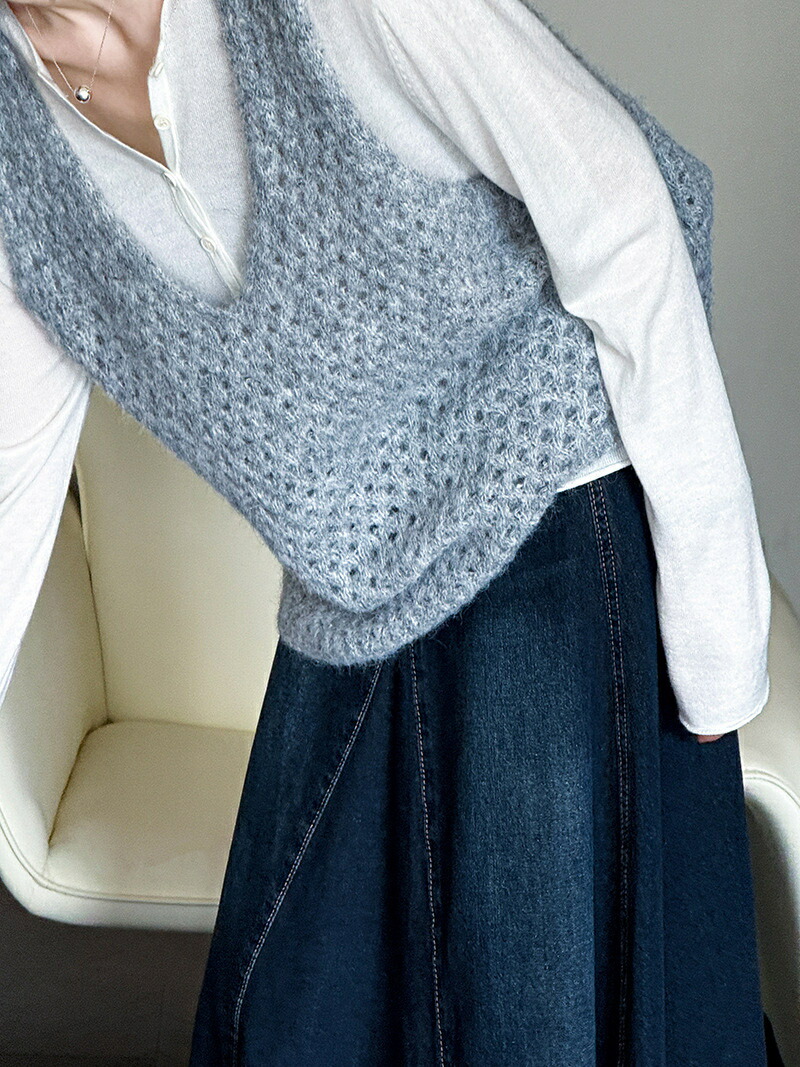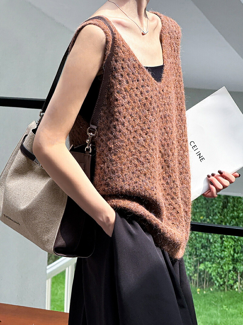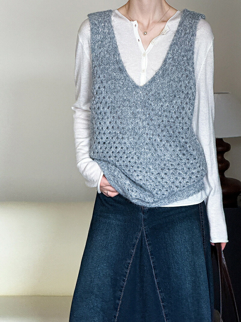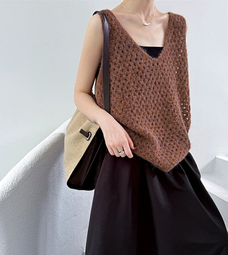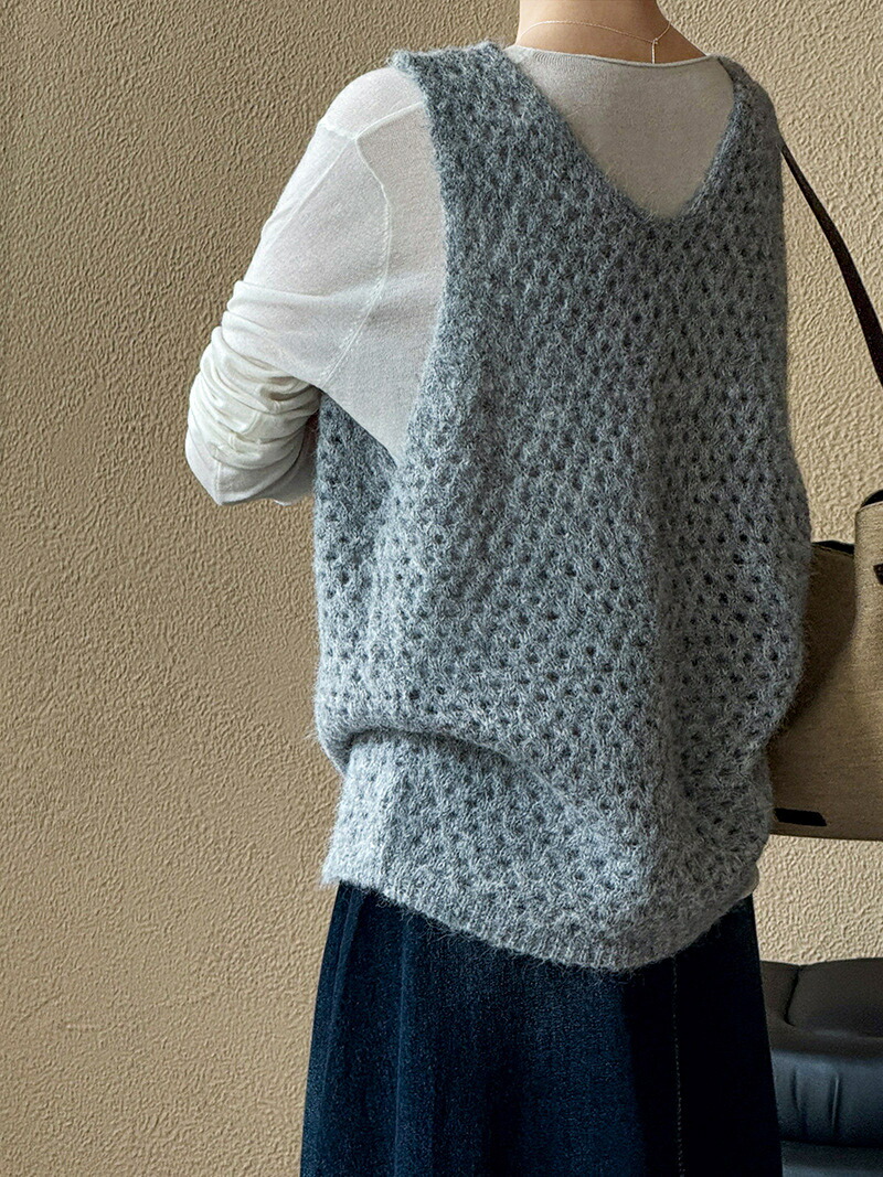 透かし編み ニットベスト Vネック レ レディースファッション 豊富な品揃え グレー ホワイト コーヒー色