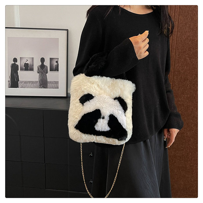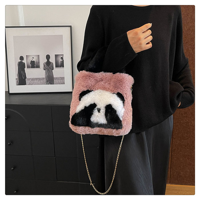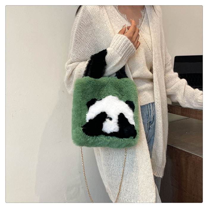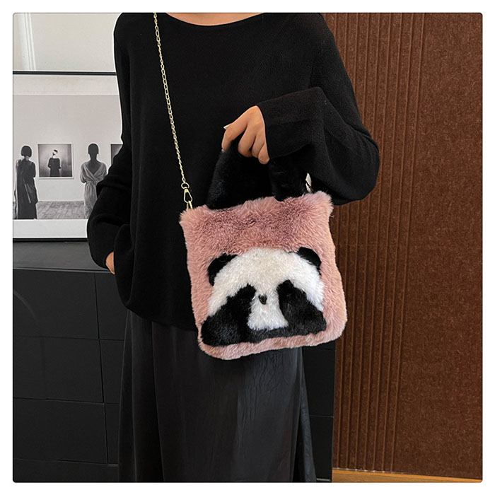ファーバッグ レディース パンダ ハン バッグ レディースバッグ ハンドバッグ 人気 ベージュ ピンク オフホワイト グレー グリーン ブラウン