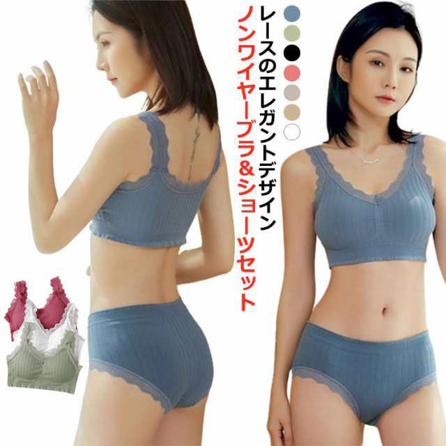 ブラ ショーツ セット ノンワイヤー レディース インナー 下着 セット ブラジャー&ショーツ 豊富 ブルー グリーン ブラック パープルレッド グレー ブラウン ホワイト