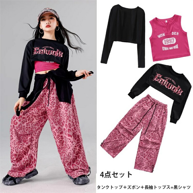 ピンク系 子供服 キッズ ヒョウ柄 ダ キッズ ベビー マタニティ 続々登場 2点セット 3点セット 4点セット タンクトップのみ 英字柄トップスのみ 黒ジャケットのみ ヒョウ柄ズボン 110 120 130 140 150 160 170