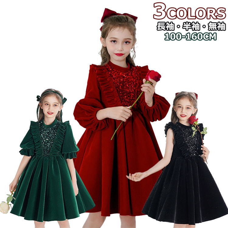 キッズ ワンピース 秋冬 フォーマル キッズ ベビー マタニティ 早い者勝ち 110CM 120CM 130CM 140CM 150CM 160CM レッド グリーン ブラック