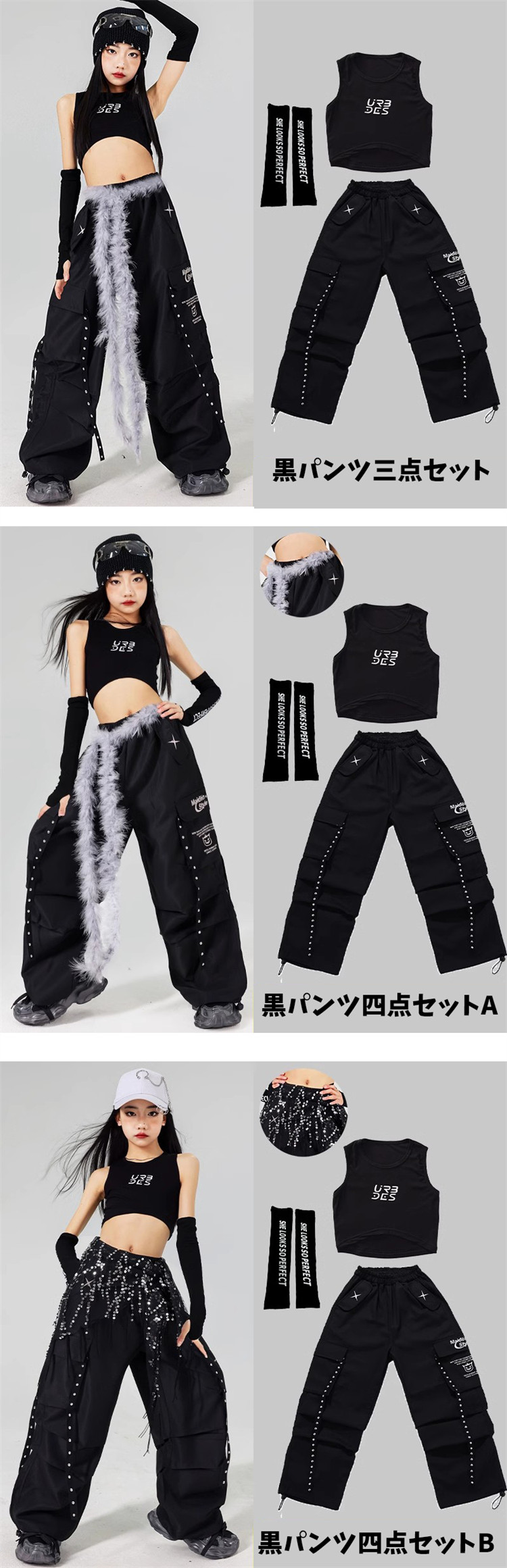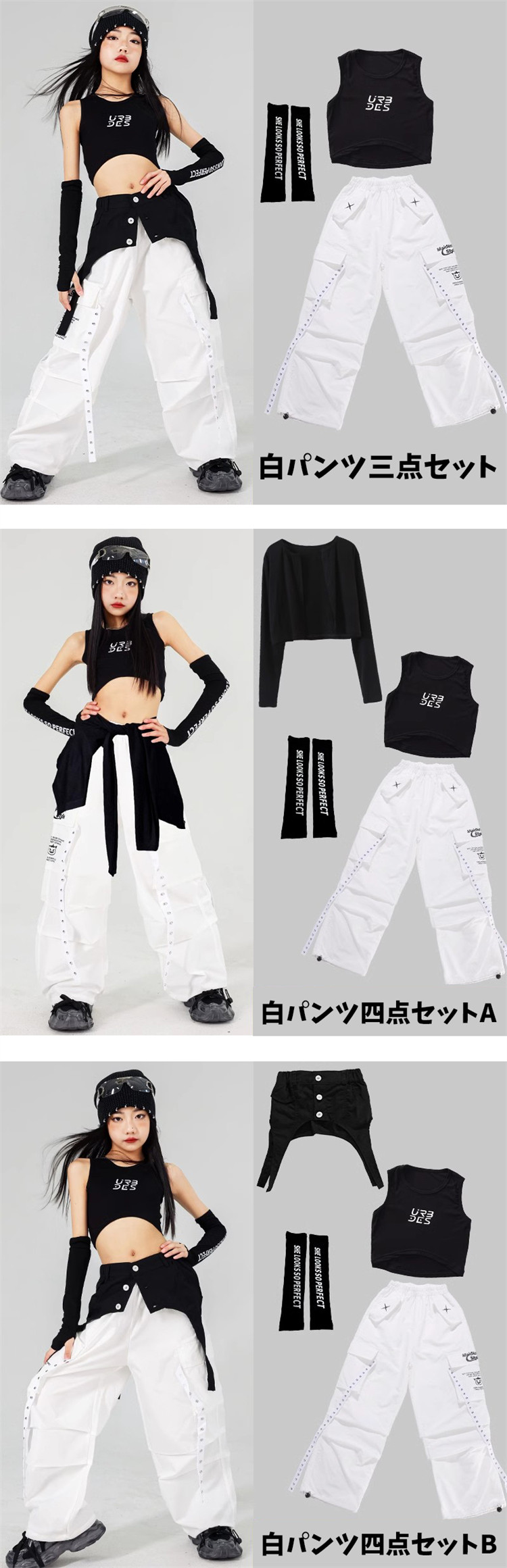 黒 白 キッズ ジャズ ダンス衣装 女 キッズ スーツ カジュアルセットアップ カジュアルパンツセット 続々登場 白パンツ三点セット 白パンツ四点セットA 白パンツ四点セットB 黒パンツ三点セット 黒パンツ四点セットA 黒パンツ四点セットB タンクトップ 白パンツ 黒パンツ 110 120 130 140 150 160 170