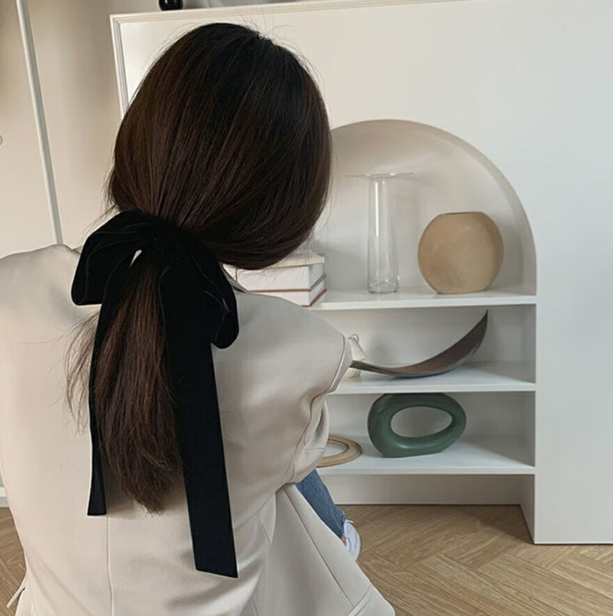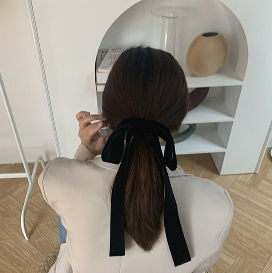 ベルベットロングリボンヘアゴム リボン レディースジュエリー アクセサリー ヘアアクセサリー ヘアゴム 続々登場