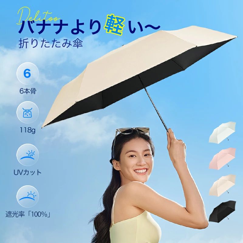 紫外線対策 uvカット 6本骨 折り畳 傘 晴雨兼用傘 豊富 ホワイト ベージュ ピンク ブラック