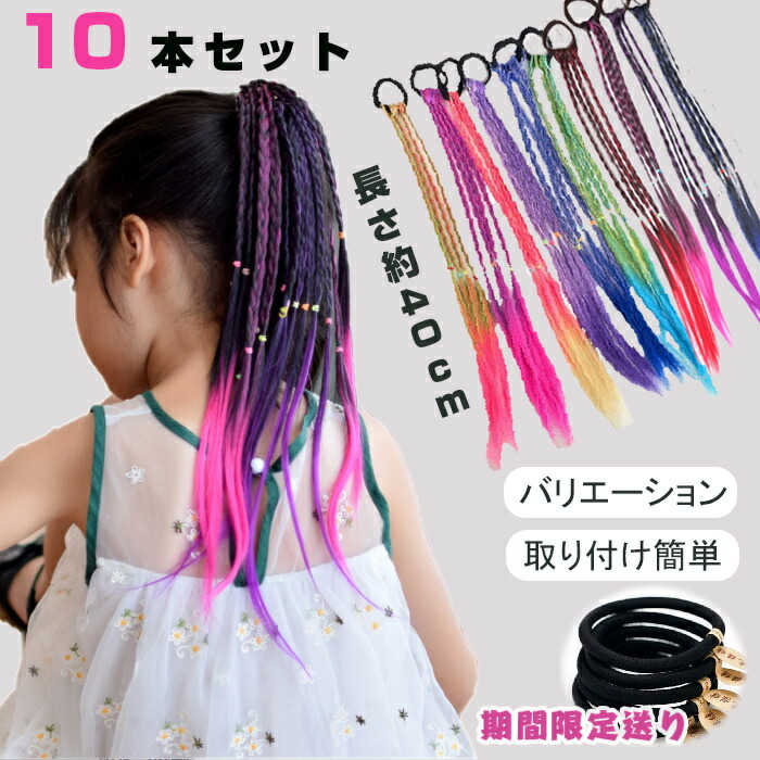 エクステ キッズ ダンス 髪型 キッズダンス衣装 ヘアエクステ ヘアアクセサリー ガールズ ハロウィン クリスマス ヒップホップ 卒園式 コスプレ 子供 髪飾り 三つ編み 編み込み 10色セ ウィッグ