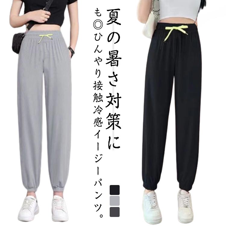 ジョガーパンツ 接触冷感 イスシルク レディースファッション 続々登場 ブラック ライトグレー ダークグレー M L XL 2XL 3XL 4XL 5XL