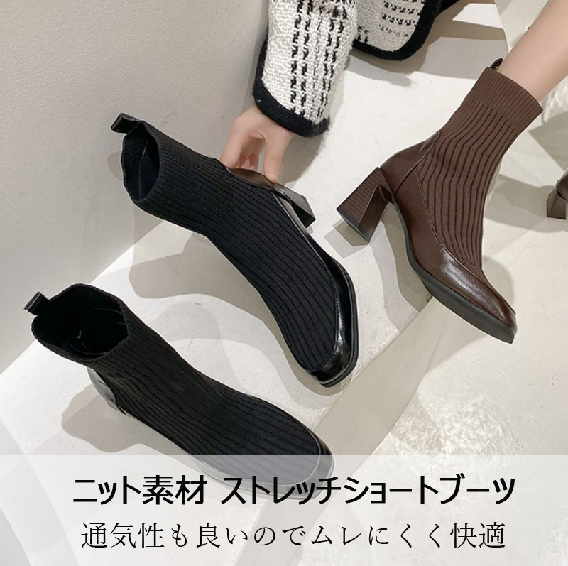 ソックスブーツ レディース ニット ブ 靴 特集 ブラック ブラウン 番Bブラック 34(22.0cm) 35(22.5cm) 36(23.0cm) 37(23.5cm) 38(24.0cm) 39(24.5cm)