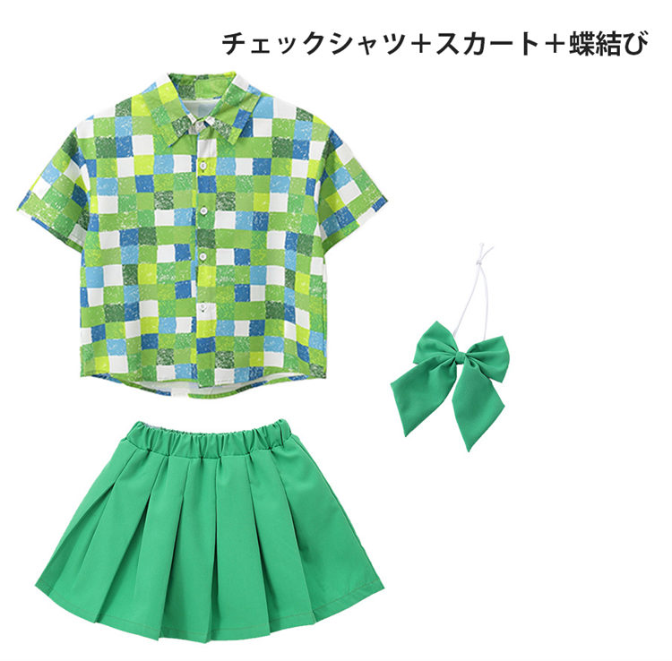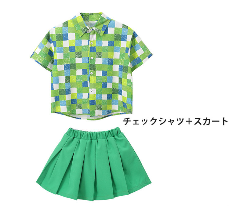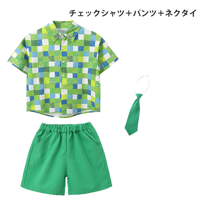 キッズ グリーン 子供服 ダンス衣装 キッズ スーツ カジュアルセットアップ カジュアルパンツセット 早い者勝ち チェックシャツ+スカート チェックシャツ+パンツ シャツ+スカート+蝶結び シャツ+パンツ+ネクタイ 100 110 120 130 140 150 160 170 180