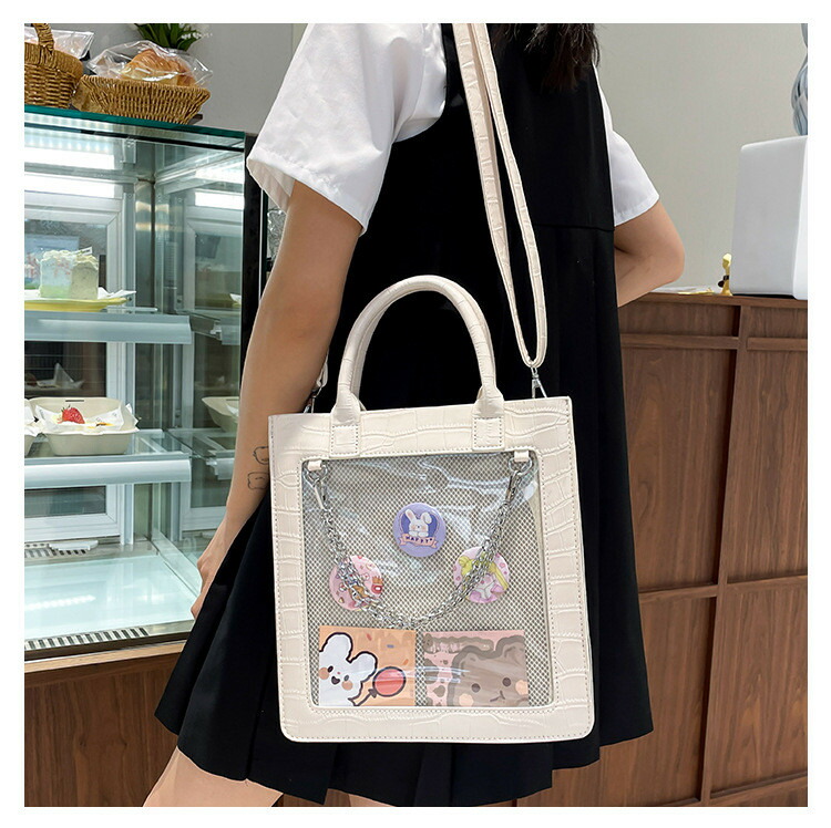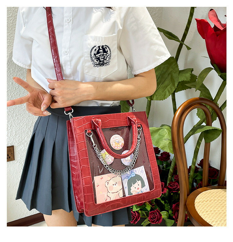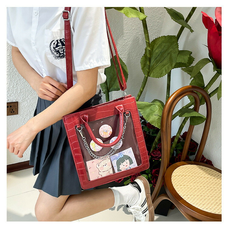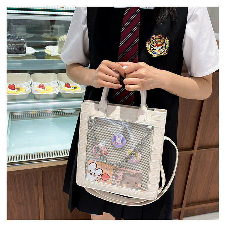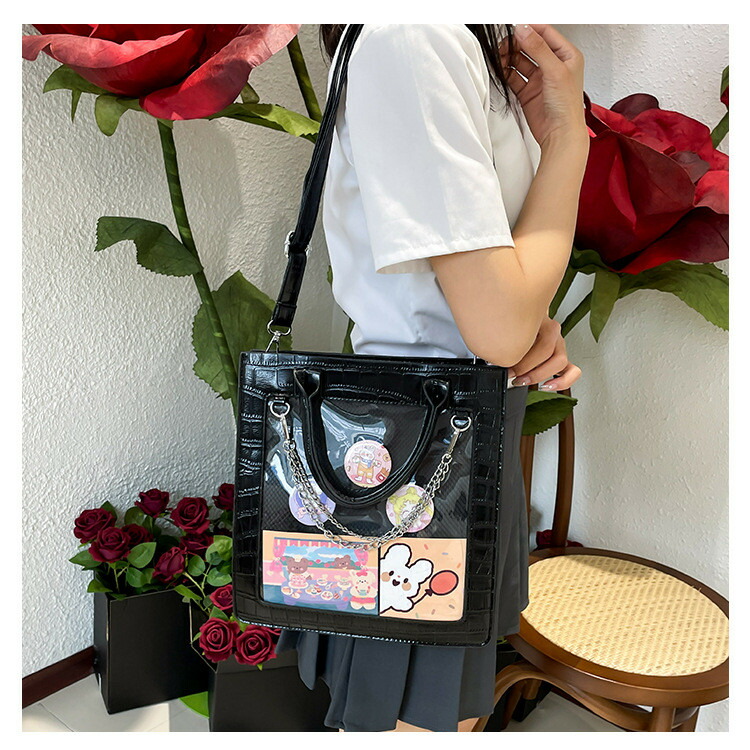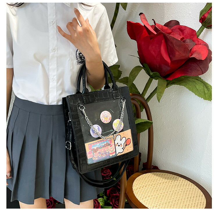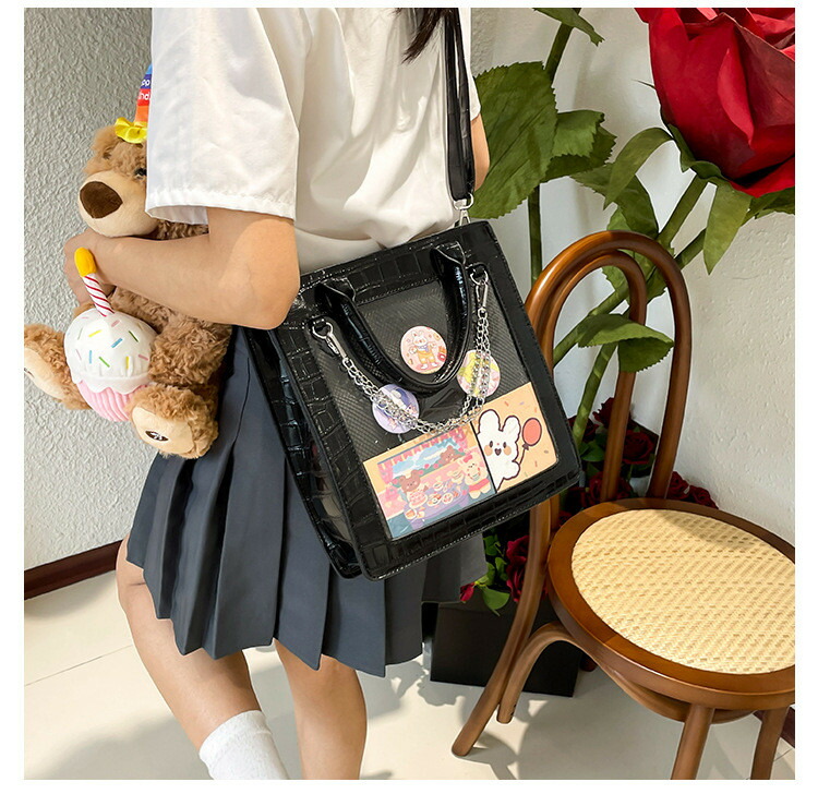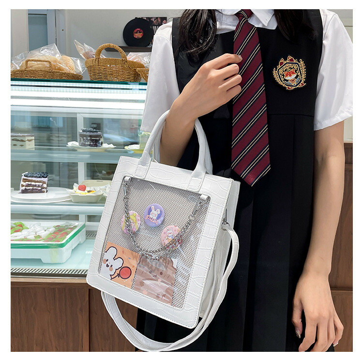 キレイ キレイめ 透明バッグ 透明 軽量 大容量 見せバッグ オタクバッグ おたく デコバッグ JK コスプレ オールシーズン 春 夏
