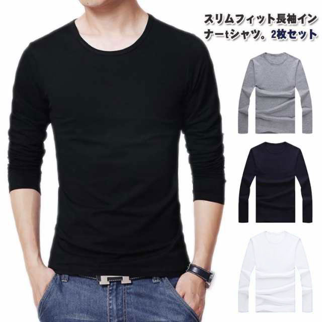 2枚セット Tシャツ メンズ 長袖 カ メンズファッション 人気 ホワイト2枚 ブラック2枚 ライトグレー2枚 ネイビー2枚 ホワイト+ブラック ホワイト+ライトグレー ホワイト+ネイビー ブラック+ライトグレー ブラック+ネイビー ライトグレー+ネイビー L XL 2XL 3XL 4XL 5XL