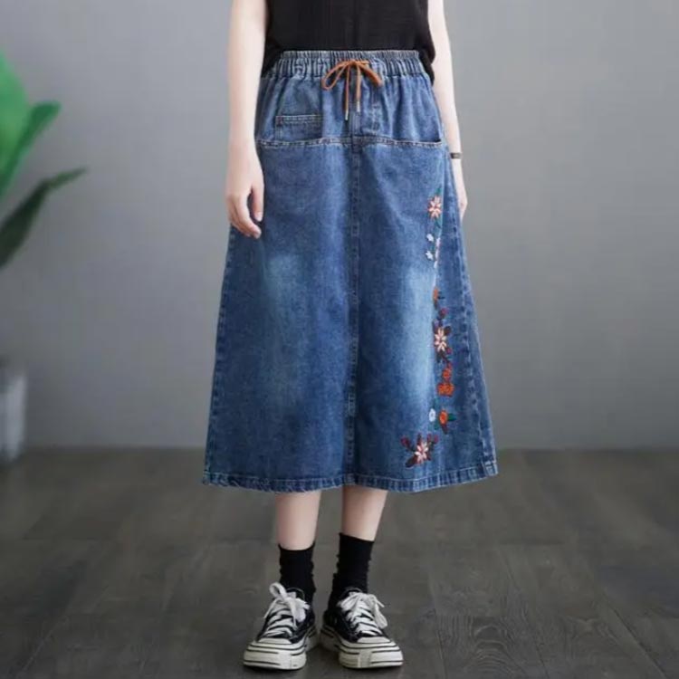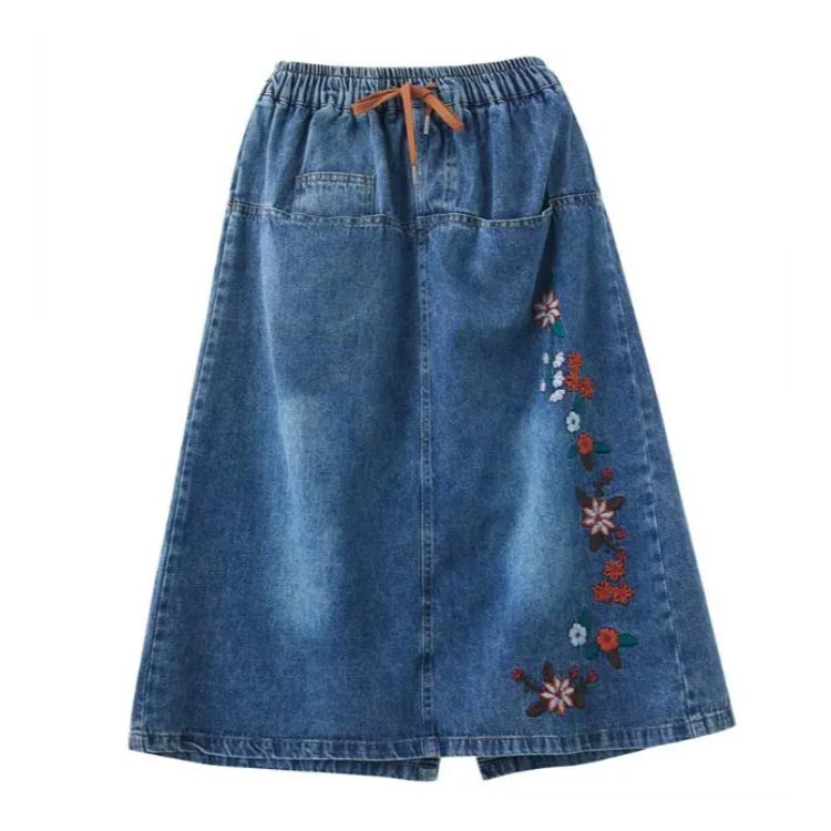 デニムスカート 刺繍 ロングスカート ボトムス スカート 通販 M L XL 2XL 3XL