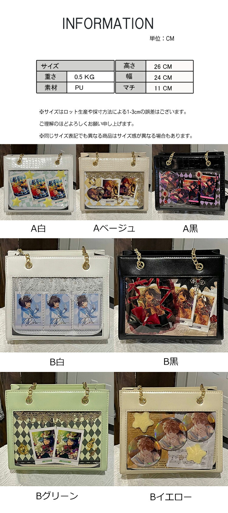 痛バ 痛バッグ バッグ トートバッグ バッグ レディースバッグ トートバッグ 新登場! A黒 Aベージュ B白 B黒 Bグリーン Bイエロー
