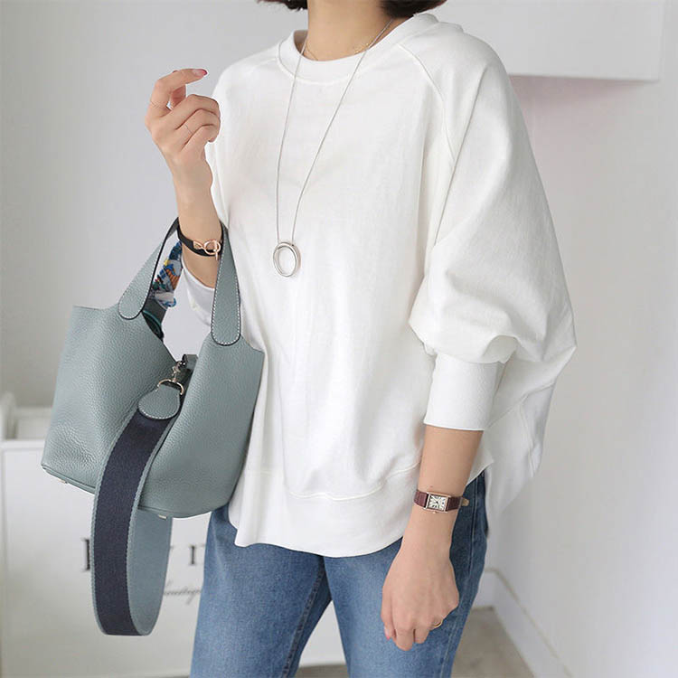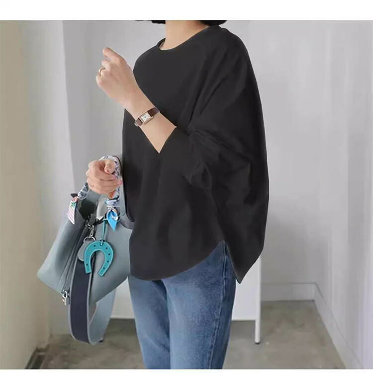 高見え×体型隠し トレーナー レディー トップス スウェット トレーナー 通販 黒 白