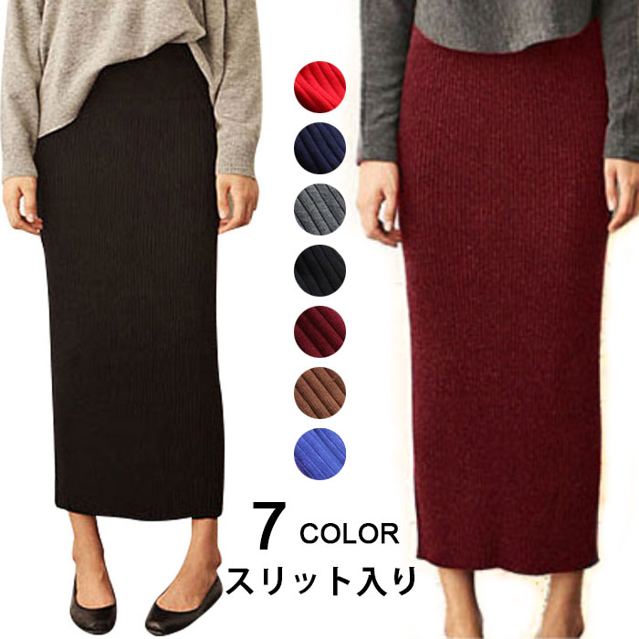 タイトスカート ニット スカート ニットスカート スリット入り タイト ミモレ丈 ロング丈 レディース ペンシルスカート 普段着 秋 マキシ丈