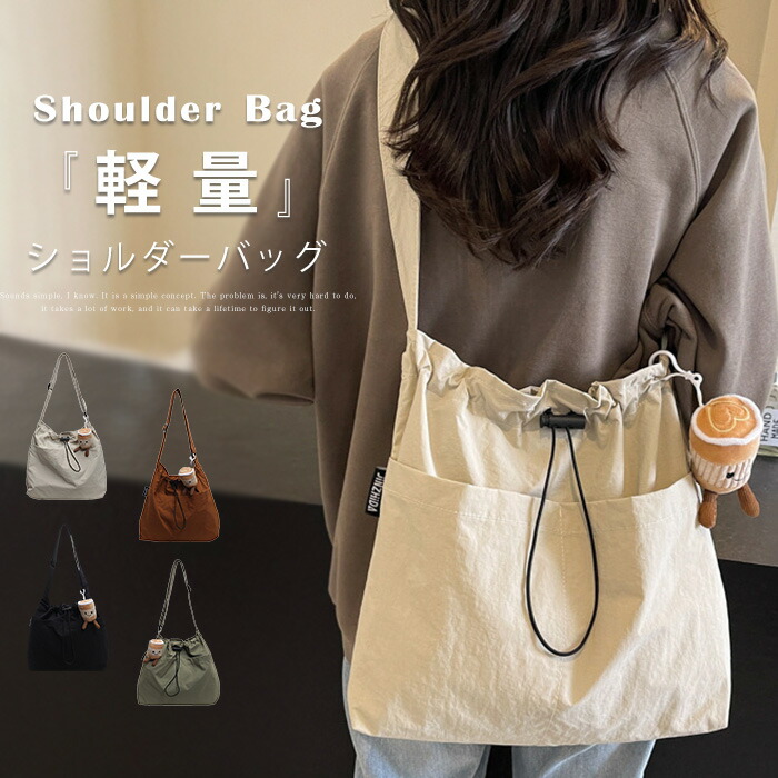 レディース 斜め掛けバック ナイロンバック かばん 巾着バッグ ドローストリング 鞄 トートバッグ カバン 肩掛けバッグ キレイめ インスタ映え カジュアル 軽い シンプル 大人可愛い ベー 軽量