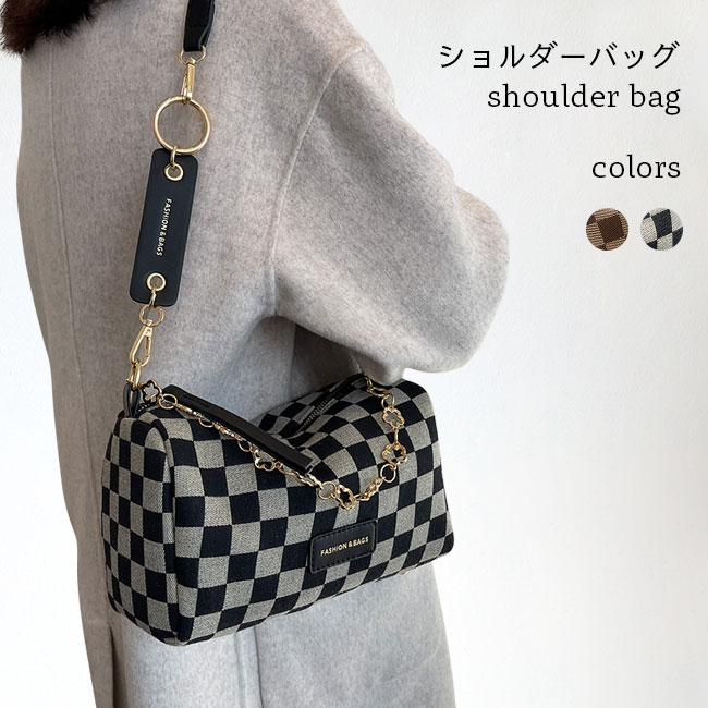 ショルダーバッグ レディース ボストンバッグ チェック柄 チェーン付き 大容量 バッグ 斜め掛け 肩掛け 2way カジュアル ファッションバッグ ファスナー 通勤 カバン 斜め掛けバッグ お デート
