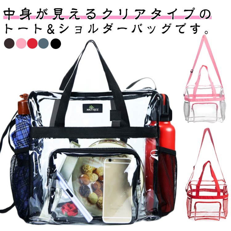 ポケット付き 肩掛けバッグ 透明 化粧品入れ メンズ レディース スケルトン 鞄 カバン 大容量 手提げかばん おしゃれ トートバッグ クリア メッシュポケット ユニセックス かわいい 中身が 持ち手