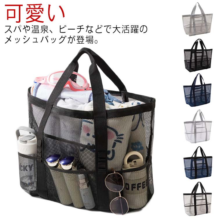 旅行 スポーツジム用 濡れてもOK シャワー お風呂 銭湯 温泉 プール ビーチバッグ トートバッグ メッシュバッグ スパバッグ
