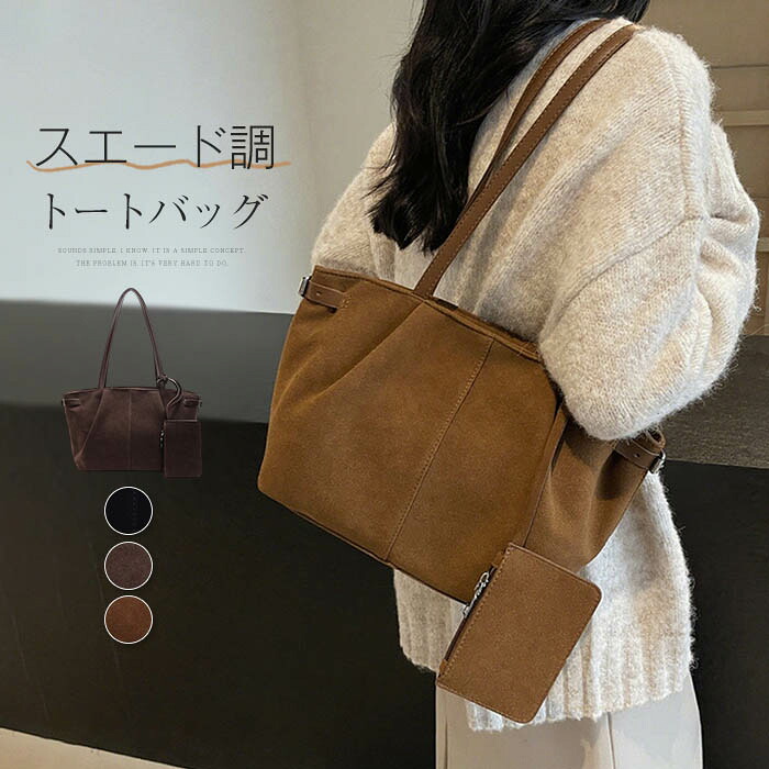 トートバッグ レディース スエード調 バッグ 大容量 スウェード風 カバン ポーチ付き トート 大きめ 肩掛けバッグ 無地 フェイクレザー 肩掛け 手提げ 鞄 通勤 通学 カジュアル ファスナー付き