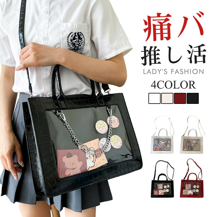 痛バッグ レディース 鞄 痛バ 両面使える 推し活 推しバッグ ガールズ バッグ ビニールバッグ カバン ビニール 缶バッチ クリアバッグ 見せバッグ かわいい カジュアル おしゃれ 学 可愛
