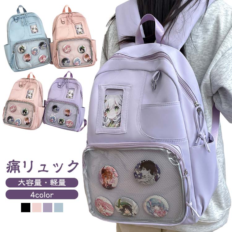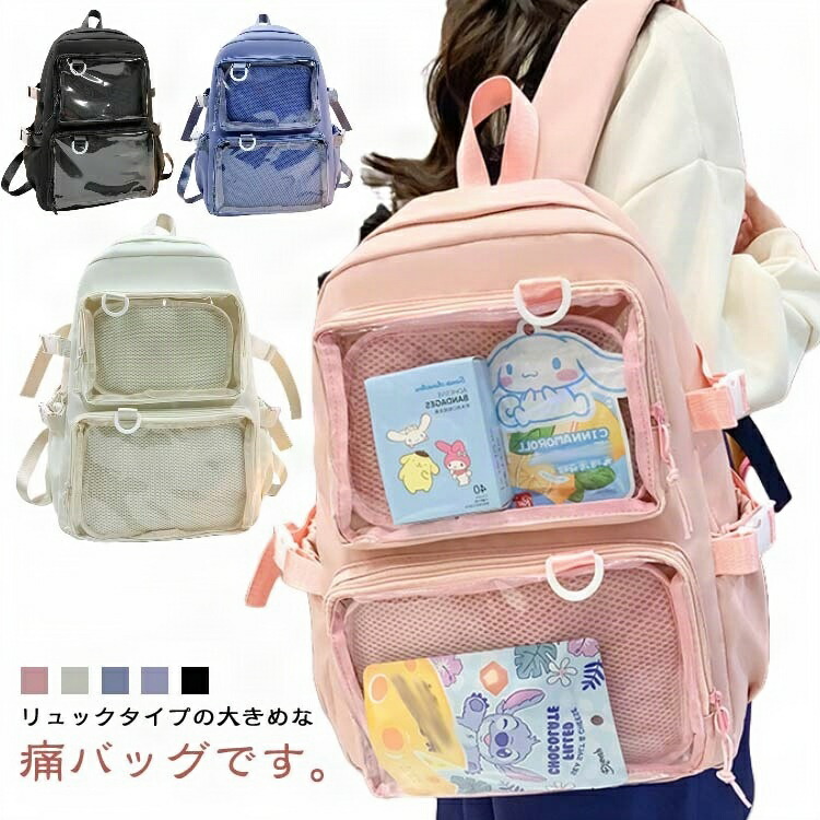 痛バッグ リュック 鞄 レディース ガールズ A4 大容量 缶バッチ デイリー 学生 ビニールバッグ ヲタバ 痛バ クリアバッグ 透明バッグ 見せバッグ カジュアル バッグ カ オタクバッグ