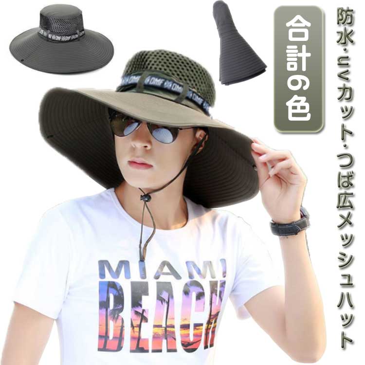 防水 帽子 日除け帽子 つば広 日除け メンズ メッシュハット uvカット つば広帽子 折りたたみ 釣り メッシュ 通気性 涼しい 遮光 あご紐付 夏 春 日焼け防止 農作業 旅行 海 ハット