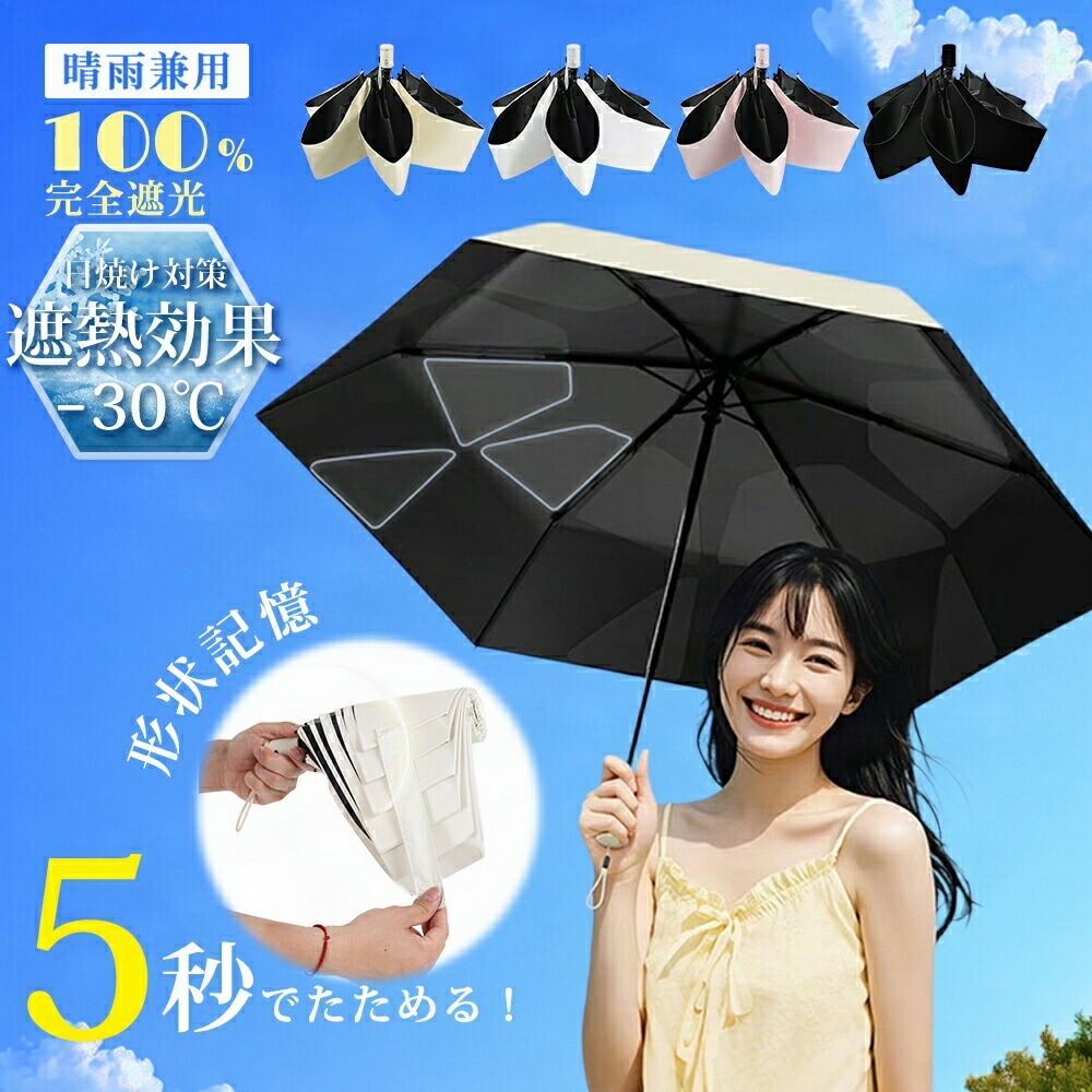 5秒でたためる軽量折りたたみ日傘 完全遮光&カット100%で晴雨兼用
