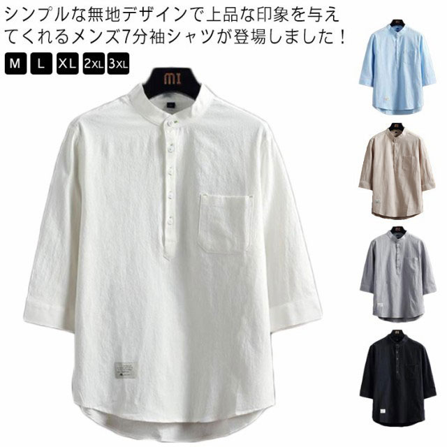 日焼け止め 無地 メンズ 綿 立ち襟 ヘンリーネックシャツ プルオーバーシャツ カジュアル 薄手 シンプル アメカジ 七分袖シャツ おしゃれ かっこいいUVカット 春夏服 ビジネス
