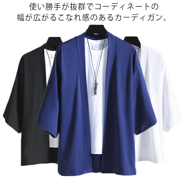 無地 夏服 大きいサイズ カジュアル 和風 アウター シャツ サマーカーディガン メンズ 春夏 七分袖 軽量 通気性 カーディガン ゆったり 羽織 お洒落