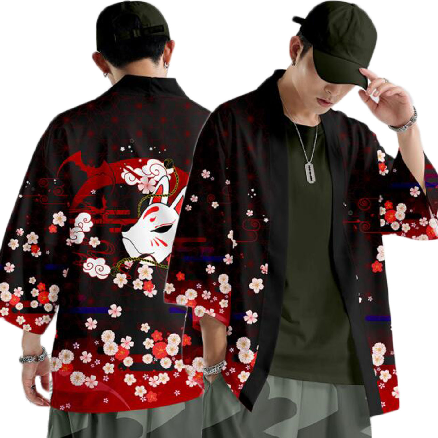 和柄羽織り メンズカジュアルセット 羽織 和柄カーディガン 振袖アウター 肩掛け メンズサルエルパンツ 九分丈パンツ カジュアル 浴衣 着物 和風 日焼け防止 プリント柄 大人コスチュー レトロモダン