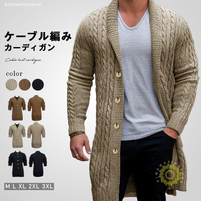 ニットカーディガン メンズ ニット カーディガン ニットジャケット ケーブル編み 長袖 ロング丈