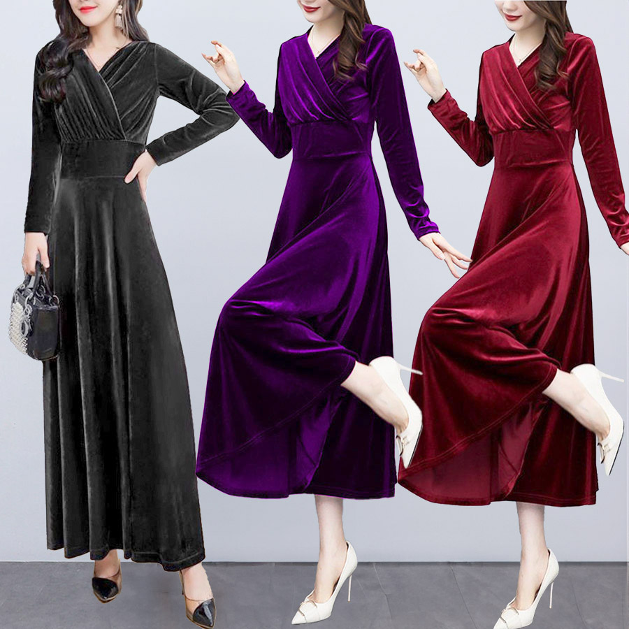 ベロア ロングワンピース フォーマル きれいめ 長袖 セレモニー ワンピース 秋冬 ロング パーティードレス フォーマルドレス フォーマルワンピース オケージョンドレス 30代 40代 50代 結婚式