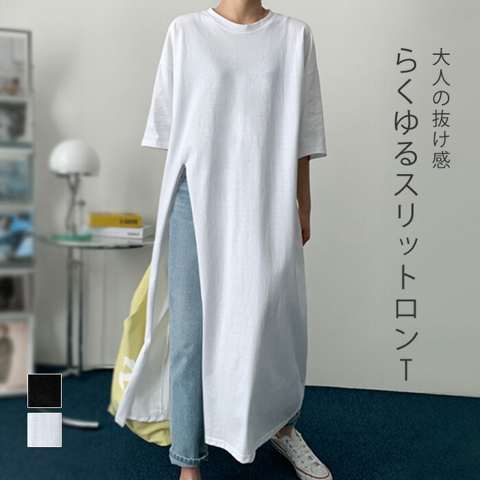 Tシャツ ロング丈 半袖 春 夏 スリット入り ワンピース Tシャツワンピース レディース ロンT 綿 コットン サイドスリット 深スリット 大きいサイズ 秋 カジュアル シン ゆったり
