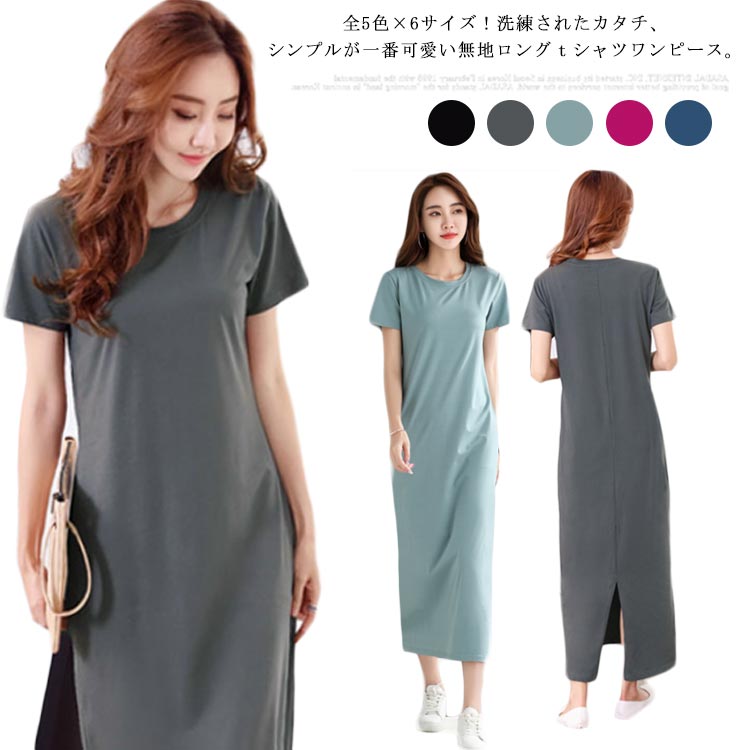 全5色×6サイズ ロングtシャツワンピース ワンピース ワンピ tシャツワンピース コットンワンピース 半袖 夏 カジュアルワンピース カットソー素材 無地 春夏 新作 シンプル