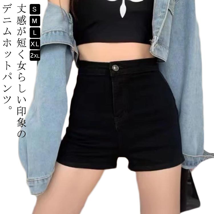 ボトムス ショート丈 ホットパンツ レディース デニム ショートパンツ 黒 ハイウエスト ダンス衣装 パンツ 短パン 美尻 大きいサイズ シンプル 伸縮性あり 美脚