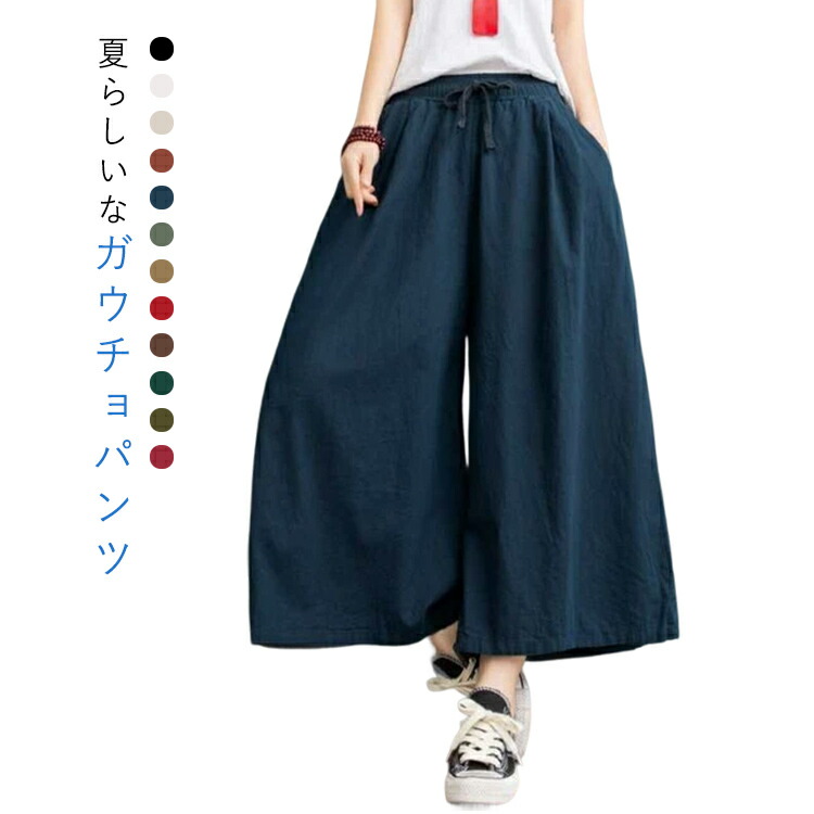 ガウチョパンツ 春夏 スカーチョ ワイドパンツ レディースパンツ 綿 スカンツ ウエストゴム 大きいサイズ 9分丈 秋冬 コットン ハイウエスト おしゃれ 可愛い ゆったり ボトムス