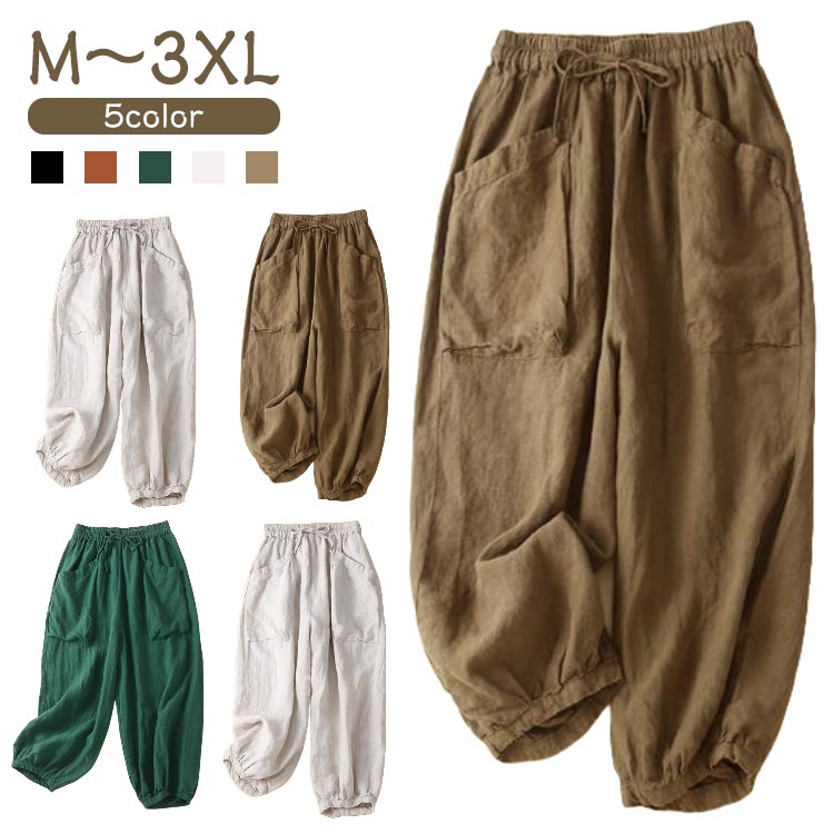 バルーンパンツ サルエルパンツ 綿麻パンツ コットンリネンパンツ カジュアルパンツ リネンパンツ 麻パンツ 通気性 ズボン ボトムス
