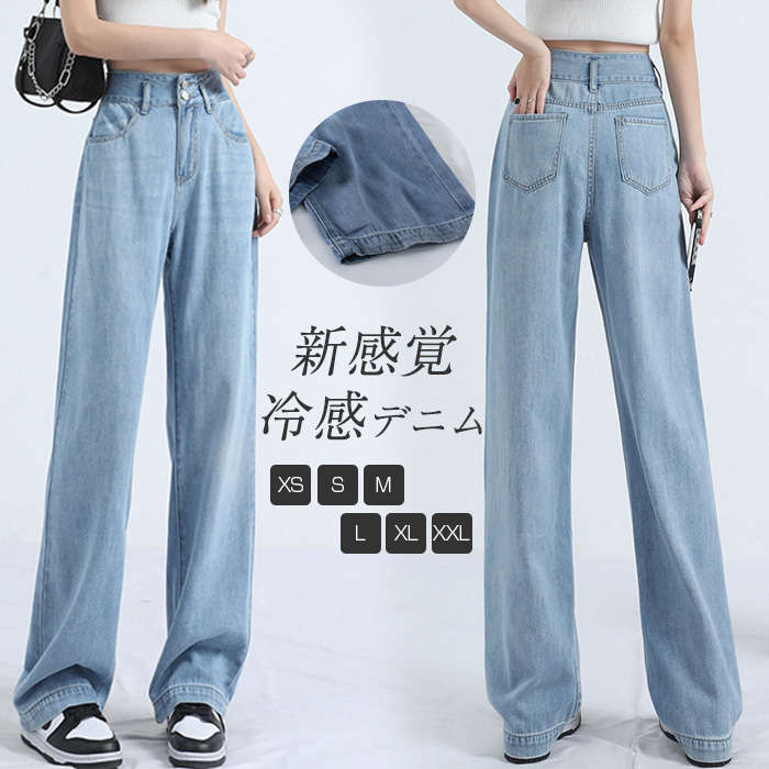 暑い季節に向かう -5° 接触冷感 薄手 デニムワイドパンツ カット 春夏 夏物 ゆったり 涼しい 清涼感 大きいサイズ 3 体型隠し 脚長効果 トレンド感 大人 送料無料 ♪
