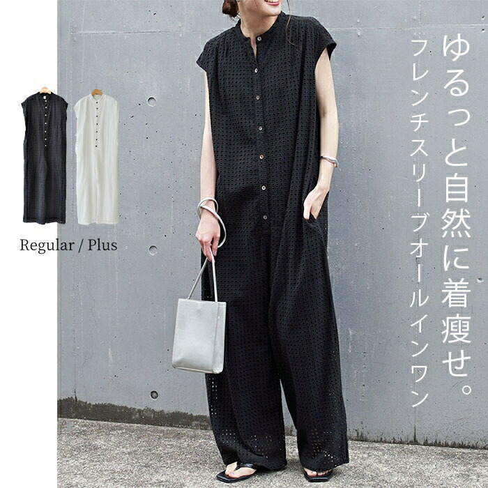 簡単コーデ~ 大人の オールインワンパンツ 20代 30代 40代 50代 黒 白 春夏 カジュアル トレンド お洒落 ゆったり 体型カバー 美脚 コットン 綿 楽 涼しい 送料無料 ♪
