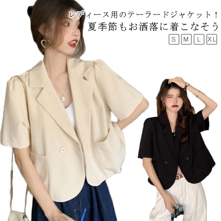 ショート丈 春夏 パーティー アウター レディース ミドル丈 おしゃれ ゆったり ジャケット 涼しい テーラードジャケット サマージャケット オフィス 半袖 20代 シンプル カジュアル 30 着瘦せ