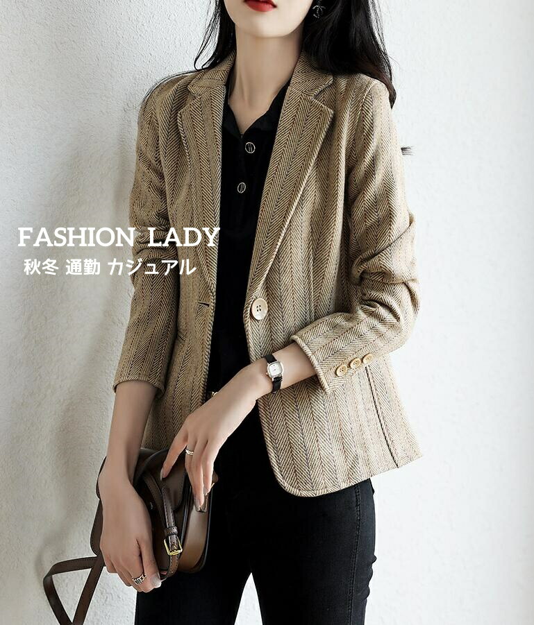 秋冬 着痩せ レディースジャケット 新着 厚み エレガント 上品 きれいめ カジュアル 一つボタン カーキ ロングスリーブ 小柄 上着 単品 通勤お出かけ パーティー お呼 ショートジャケット