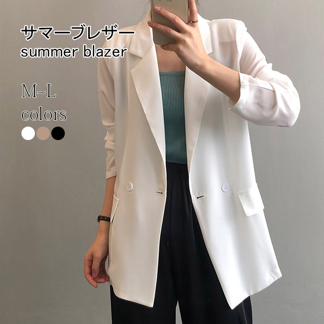 ブレザー 薄手 レディース 夏 テーラードジャケット 肩パッド付き スーツジャケット 通勤 サマーブレザー 長袖 カジュアルスーツ ジャケット オフィス テーラード 無地 ホワイト ブラウン アウター