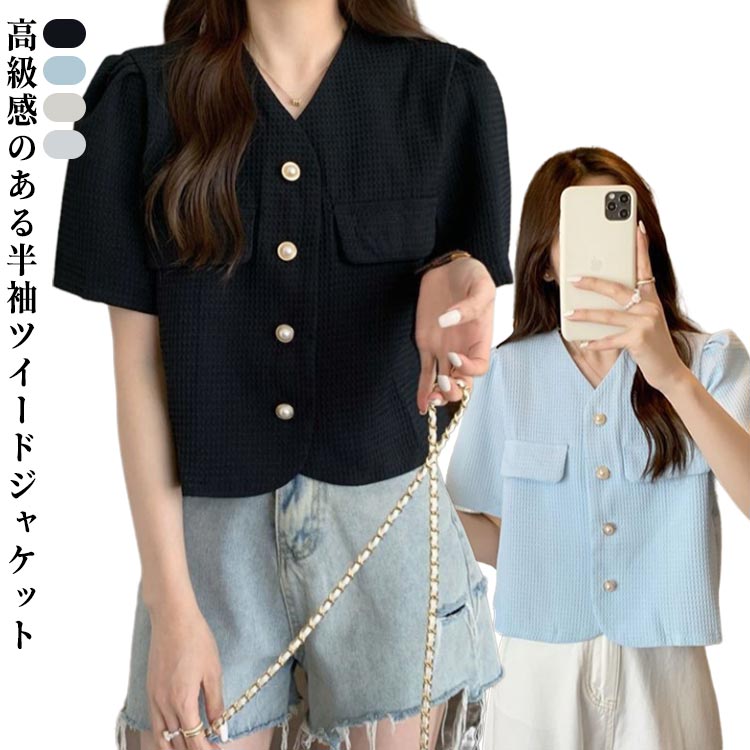 ジャケット レディース 春 ツイードジャケット サマージャケット 半袖 おしゃれ 夏 かわいい レディース アウター