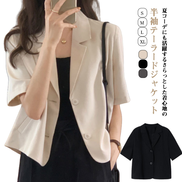 春ジャケット テーラードジャケット 涼しい 半袖 夏服 ライトアウター OL レディース サマーブレザー 通勤 薄手 サマージャケット オフィス ショート丈 カジュアルジャケット フォーマ 夏