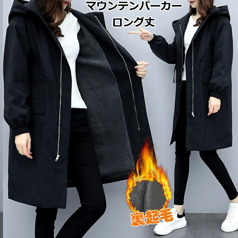 マウンテンパーカー レディース ロング丈 秋 コート 冬服 裏地あり マンパ ミディアム丈 羽織 アウター ブルゾン ジャンパー フード付き ジャケット